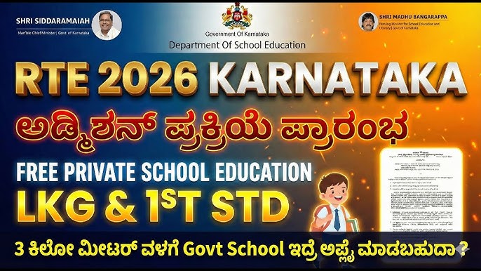 ಕರ್ನಾಟಕದಲ್ಲಿ ಆರ್ಟಿಇ (RTE) 2026-27ನೇ ಸಾಲಿನ ಪ್ರವೇಶಕ್ಕೆ ಅರ್ಜಿ ಸಲ್ಲಿಕೆ ಪ್ರಾರಂಭ..