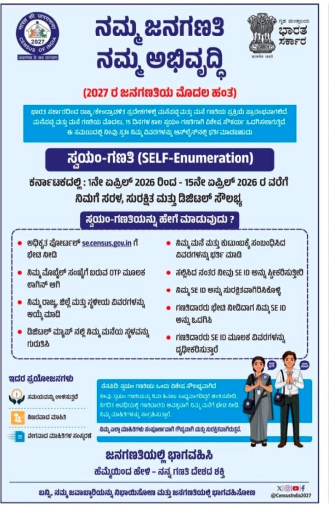 ಮನೆ ಪಟ್ಟಿ / Housing Census ಏಪ್ರಿಲ್ 1 – ಸೆಪ್ಟೆಂಬರ್ 2026