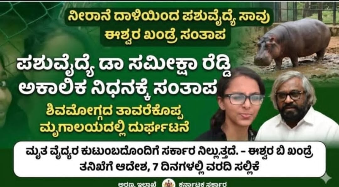 ಶಿವಮೊಗ್ಗದ ತಾವರೆಕೊಪ್ಪದಲ್ಲಿ ನೀರಾನೆ ದಾಳಿಗೆ ಬಲಿಯಾದ ಪಶುವೈದ್ಯ ಡಾ. ಸಮೀಕ್ಷಾ ರೆಡ್ಡಿ